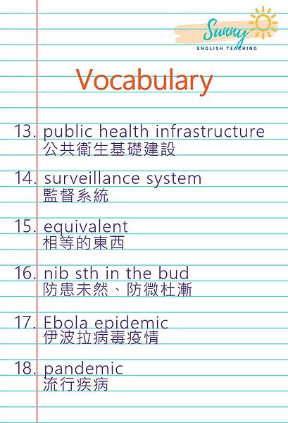 學習這支影片後,當再看到疫情新聞時,別忘了回頭想想學過的英文!每天幾個單字,就像堆砌蓋房子所需的磚頭,總有一天你將入住豪宅。影片只有3分鐘,要認真學習喔!