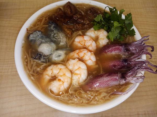 When arriving at the eatery, I ordered the vermicelli with both traditional and modern ingredients. The thin noodles were tasty and could be even better if they were hotter; if there were more bonito flakes(柴魚片) or powder to make them more flavorful; and if they tasted saltier rather than sweet. As for the ingredients shown on the top of the noodles, seafood was good, especially oysters. I was impressed by the freshness of them. Last but not least, I was able to stay in a comfy (舒適的)environment as the eatery was clean; condiments (調味品)were all there for me to use; and air conditioning was on. Overall, it is worth visiting the eatery.